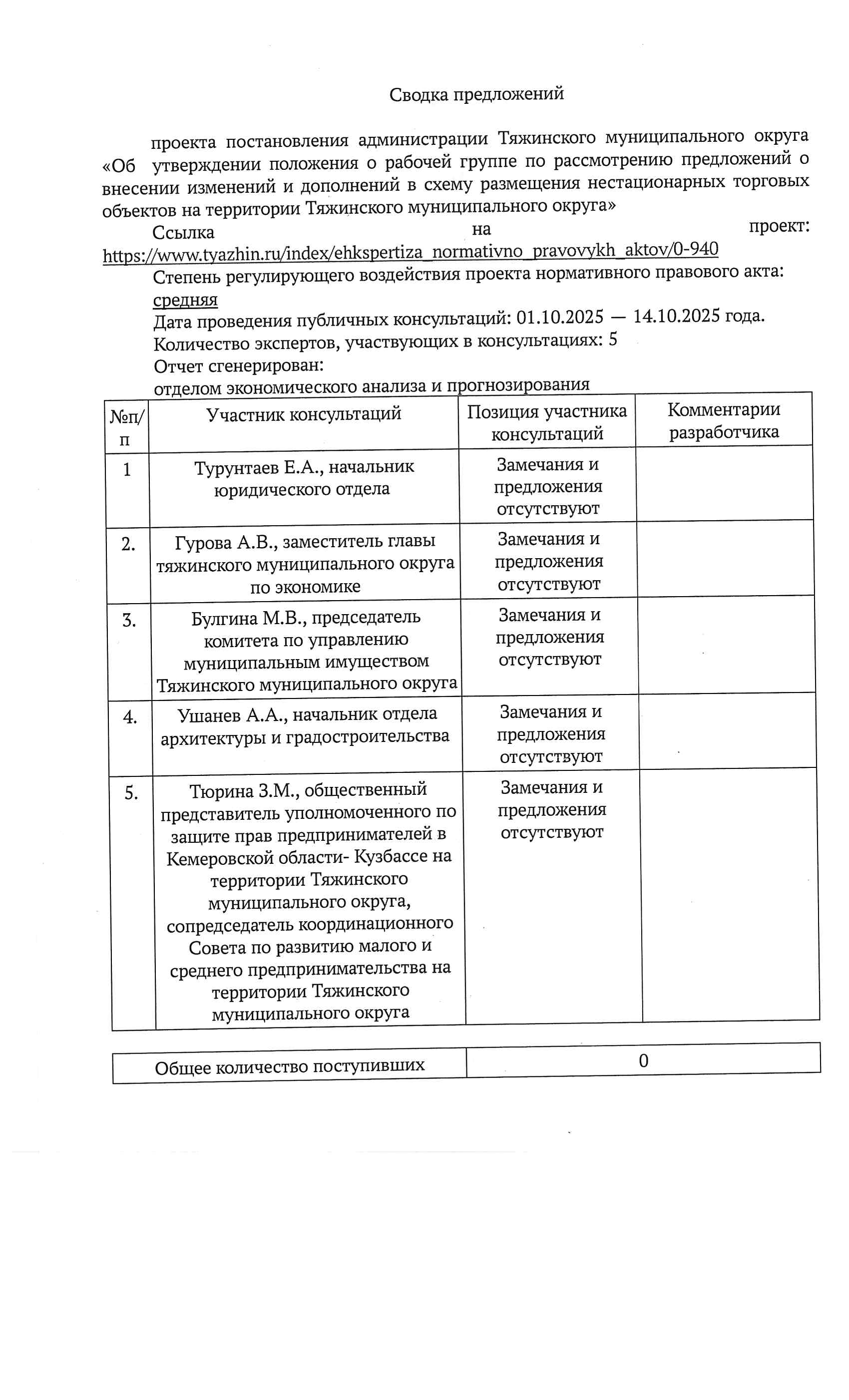 Проект постановления "Об утверждении положения о рабочей группе по рассмотрению предложений о внесении изменений и дополнений в схему размещения нестационарных торговых объектов на территории Тяжинского муниципального округа"