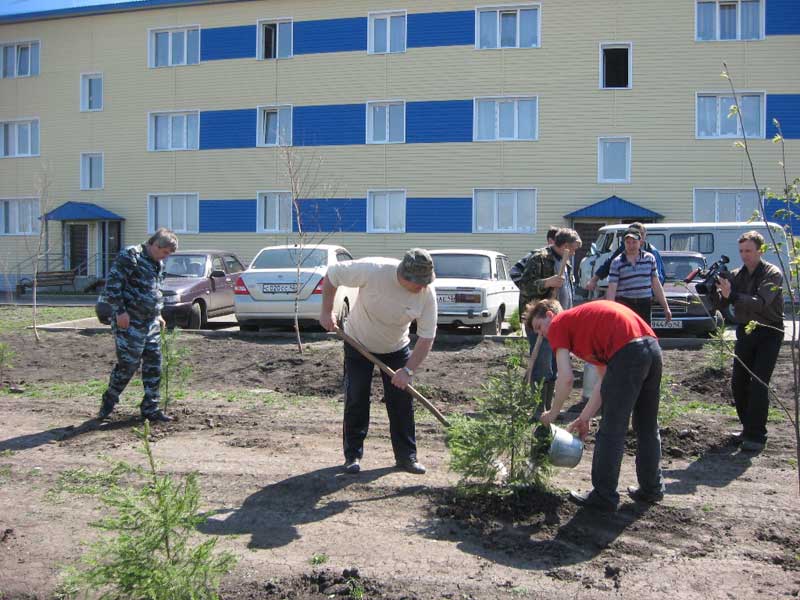 В Тяжинском районе прошла акция по массовой посадке деревьев.За минувшие 10 лет в районе высажены аллеи почётных жителей, ветеранов, выпускников. Уже пятый год по инициативе Главы Тяжинского муниципального района Константина Александровича Соловьёва действует своя программа озеленения территории. На въезде в посёлок Тяжинский, в микрорайоне пассажирского автотранспортного предприятия, появился сосновый бор, а на улице Советской – разбиты аллея и сквер. В национальный день посадки леса, только в посёлке Тяжинский, в этих работах приняли участие более 400 человек. В районном центре высажено 1,5 тысячи саженцев. В микрорайоне профилактория напротив детско-юношеской спортивной школы положено начало аллее спортсменов. Неподалёку от загородного лагеря отдыха «Олимпиец» служащие Администрации Тяжинского муниципального района основали парк с одноимённым названием. В национальный день посадки лесов по району было высажено более 4 тысяч деревьев и кустарников – ель, пихта, рябина, акация, берёза. Глава Тяжинского муниципального района Константин Александрович Соловьёв отметил, в акции приняли все организации бюджетной сферы: «В частности все как один вышли администрация района, управление образования, финансовое управление, работники культуры и социальной защиты населения, поселковая администрация. В этот тёплый, солнечный день лесопосадками занимаются 2,5 тысячи человек. Я думаю, что замечательное настроение участников акции, позволит приняться всем деревцам, которые были посажены. Сегодня мы оказываем помощь нашим лесничествам, которые также ведут свою плановую посадку лесов. Я считаю, что это действенная помощь. В недалеком будущем, через несколько десятков лет, природа скажет нам «спасибо». Новые деревца высаживали школьники, ветераны, работники учреждений социальной сферы, предприятий и организаций всех форм собственности. Также наведён порядок в лесопосадках прошлых лет, все не принявшиеся саженцы заменены. В местах проведения акции было организовано музыкальное сопровождение, её участники могли подкрепить силы окрошкой, чаем с булочками и пирогами.