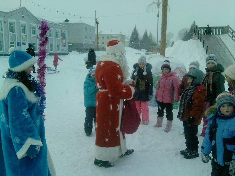В дни новогодних каникул отдел молодёжной политики и спорта администрации Тяжинского муниципального района совместно с районным Домом культуры «Юбилейный» с участием волонтеров на площади Ленина проводит спортивно-развлекательные мероприятия с детьми. Поздравления Деда Мороза и Снегурочки, соревнования с белым медведем, шутки, конкурсы, танцы и хоровод ребята воспринимают с восторгом. За активное участие дети поощряются конфетами, а для всех желающих в это время предлагается горячий чай.