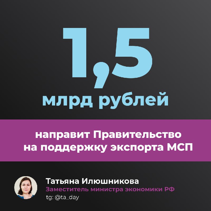Сегодня на малый и средний бизнес приходится 18–20% несырьевого экспорта. Чтобы таких компаний становилось больше, Правительство направит регионам 1,5 млрд рублей. Эти средства через Центры поддержки экспорта будут работать напрямую для предпринимателей. Финансирование получат 74 региона. До конца 2025 года поддержку смогут получить свыше 1000 экспортно ориентированных компаний. В первом полугодии центры уже помогли выйти на международные рынки 540 компаниям. Через Центры поддержки экспорта предприниматели смогут получить помощь с сертификацией продукции, участием в международных выставках, сопровождением контрактов, а также с выходом на зарубежные маркетплейсы. Центры играют ключевую роль: они помогают пройти путь от первых шагов во внешней торговле до реальных контрактов н