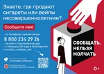 Не оставайтесь в стороне – сообщайте о нарушениях. Только вместе мы сможем оградить детей от употребления табачной и никотинсодержащей продукции!
