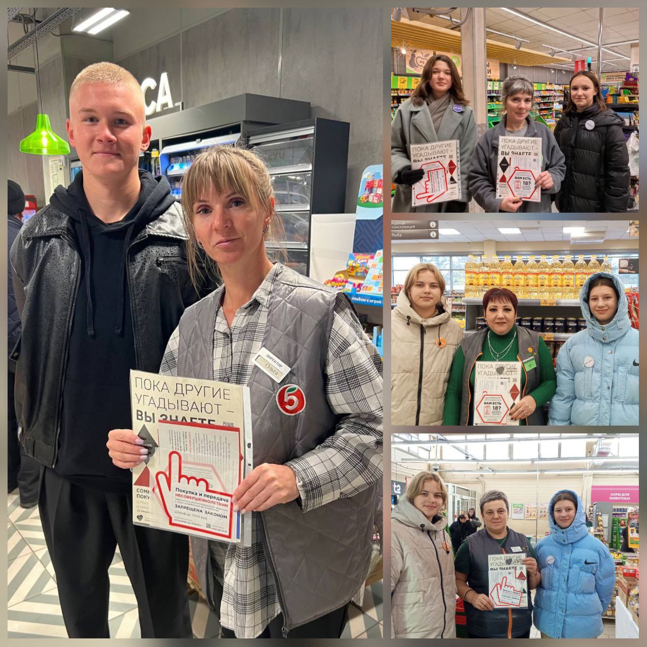 В рамках акции волонтеры Добро.Центра Тяжинский посетили сетевые магазины розничной торговли в пгт Тяжинский, где реализуются табачные и никотинсодержащие изделия. Им были вручены информационные материалы: плакаты, памятки для продавцов, а также стикеры для покупателей, информирующие о запрете продажи и передачи табачной продукции несовершеннолетним, а также о штрафных санкциях за нарушение законодательства.