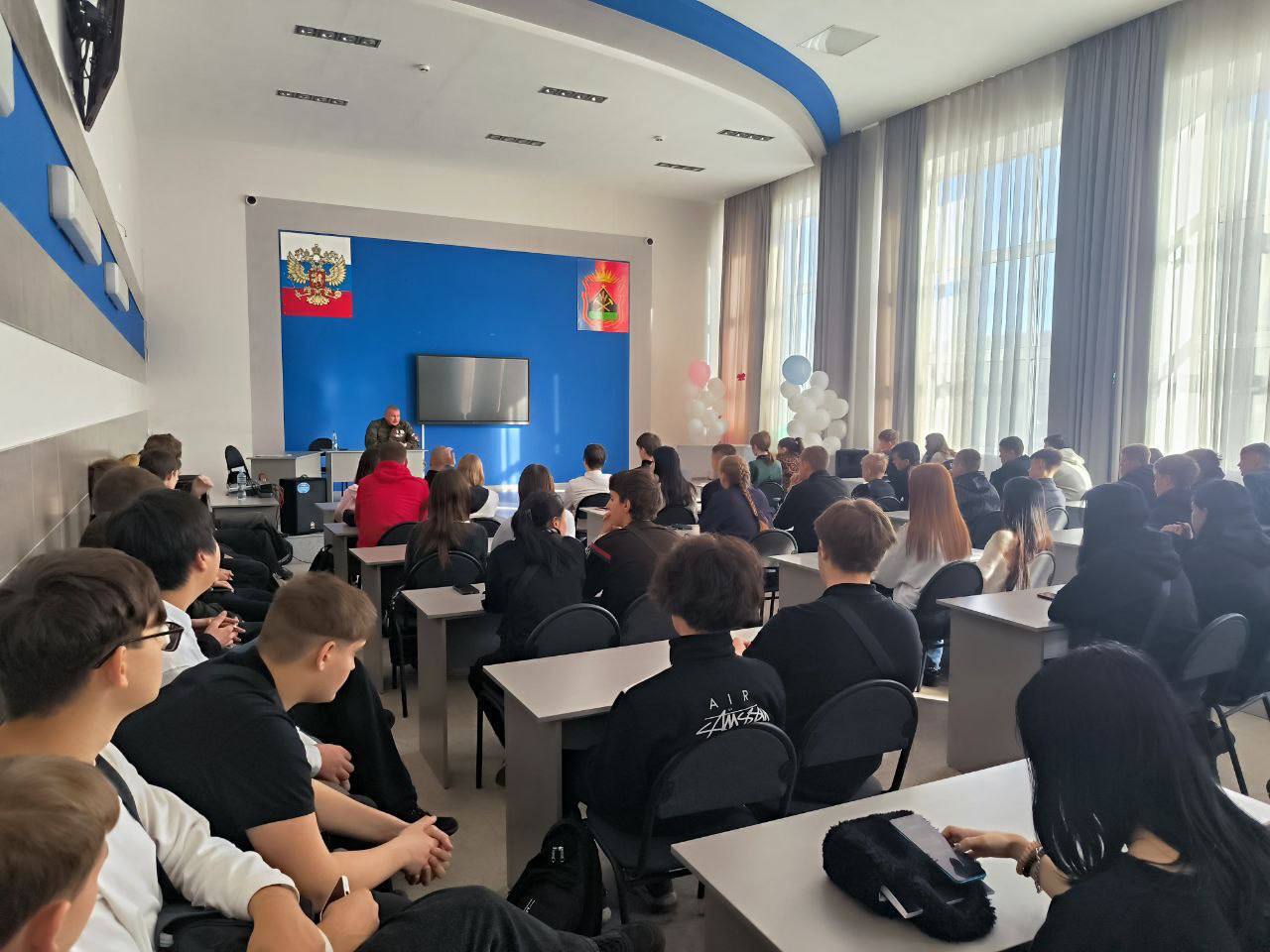 В Томь‑Усинском энерготранспортном техникуме в Мысках первокурсники встретились с ветераном боевых действий, участником программы «СВОи Герои. КуZбасс» Вадимом Шекерой. На уроке мужества с ребятами поговорили о верности присяге, боевой дружбе.