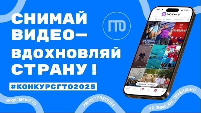 С 14 ноября по 14 декабря поделись своим взглядом на спорт и движение ГТО! Выбирай жанр, записывай видео и публикуй в VK Клипы с хэштегами: #КонкурсГТО2025 и вторым в зависимости от выбранной категории.