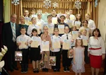 Открыл и завершил концертную программу педагогический ансамбль песнями А.Лепина «Хорошее настроение» и А.Зубкова «Новогоднее настроение». Дед Мороз (Суханов А.В., преподаватель) и Снегурочка (Чухрова Н.А., заместитель директора по учебной работе) поздравили всех присутствующих с наступающим Новым годом, вручили отличникам школы Губернаторскую премию за отличную учёбу, благодарственные письма управления культуры администрации Тяжинского муниципального округа и новогодние подарки от главы округа Сереброва В.Е.