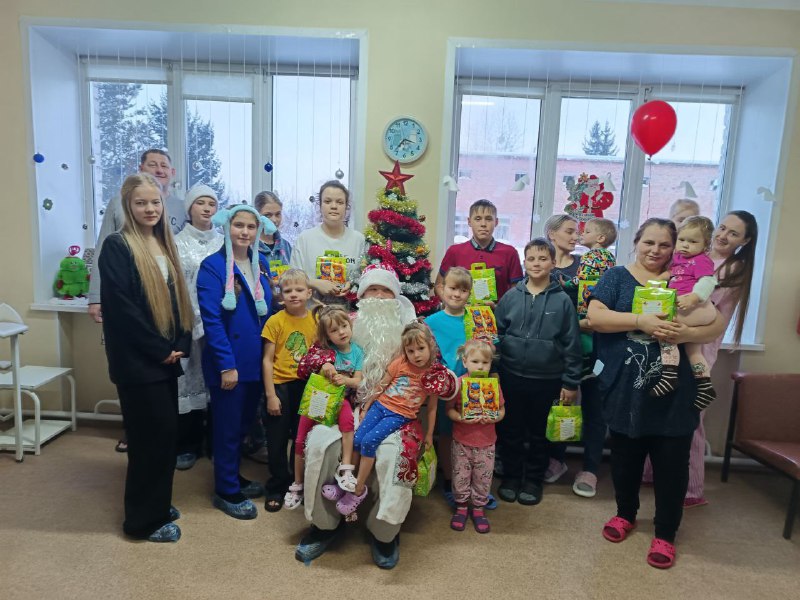 Волонтеры подготовили сценарий, оделись в костюмы сказочных героев и 25 декабря поздравили с наступающим Новым годом деток и их родителей, которые сейчас находятся на стационарном лечении в детском отделении.