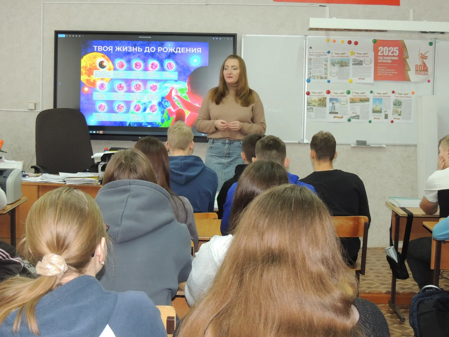 В Тяжинском агропромышленном техникуме состоялось уникальное просветительское занятие по теме «Да не прервется жизнь поколений: твоя жизнь до рождения», проведенное волонтёром благотворительного фонда защиты семьи, материнства и детства имени Святителя Николая Чудотворца - Менгаловой Еленой Анатольевной.