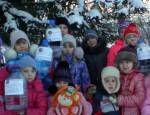 Главная » 2015 Ноябрь 30 » Акция Акция В деревне Георгиевка прошла экологическая акция «Кормушка».Участники акции из клуба «Экотопик» рассказали землякам, какую пользу приносят птицы. Ребята познакомили присутствующих с правилами установки кормушек и рассказали, как нужно подкармливать птиц зимой. Юные экологи установили 10 кормушек, сделанных из пластиковых бутылок. На каждую из них прикрепили памятки «Чем кормить птиц зимой». Предприниматель Галина Николаевна Иванова угостила участников акции сладостями.