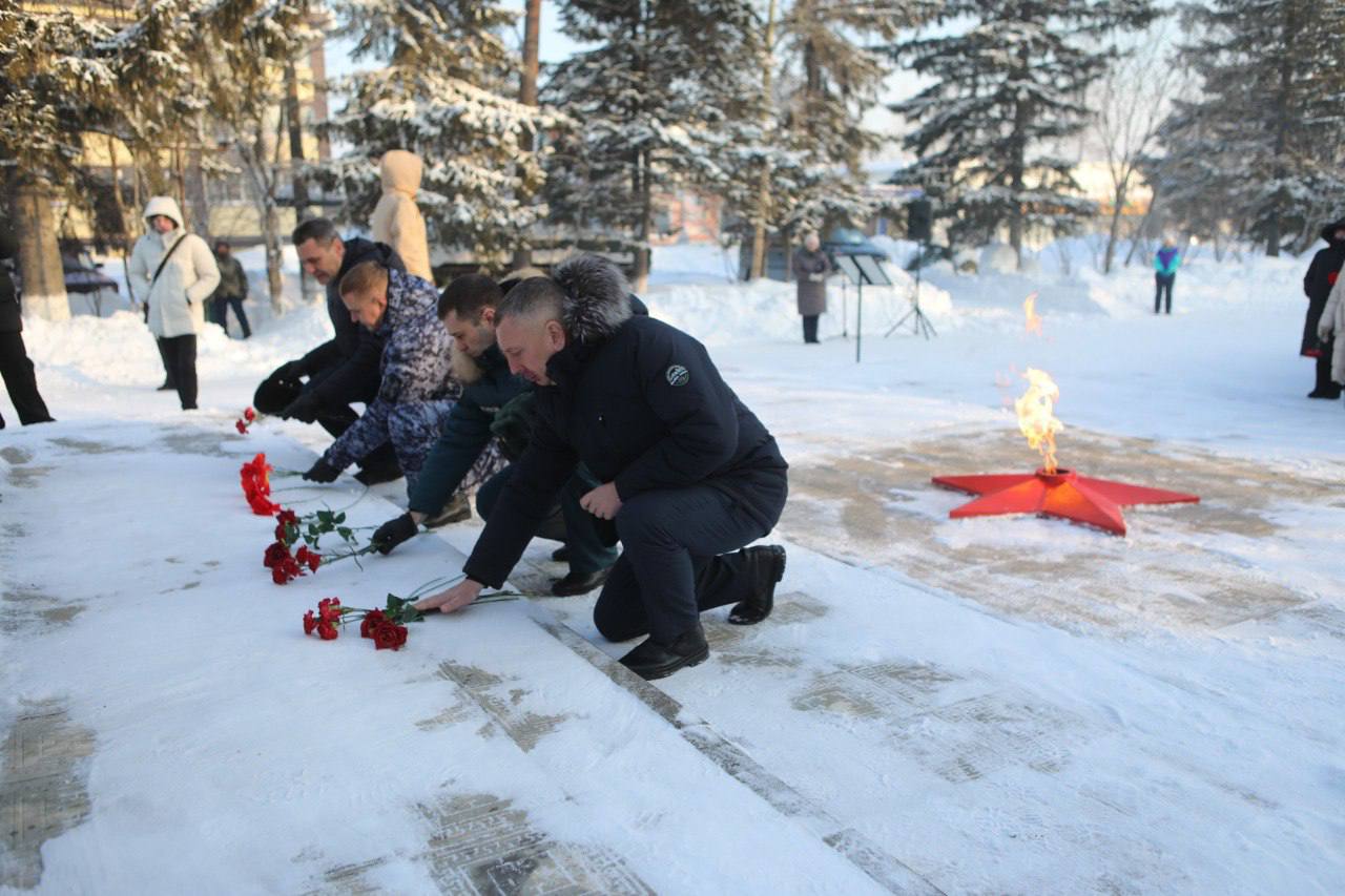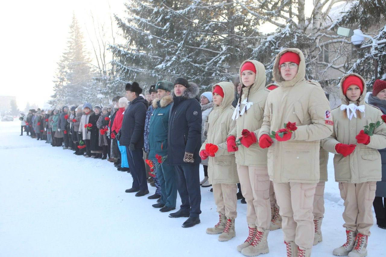 Главная » 2026 Январь 27 » Церемония возложения цветов, посвященная дню полного снятия блокады Ленинграда Церемония возложения цветов, посвященная дню полного снятия блокады Ленинграда В день полного освобождения Ленинграда от фашистской блокады в пгт Тяжинский состоялась церемонии возложения цветов.В память о событиях блокадного Ленинграда глава Тяжинского муниципального округа В.Е. Серебров совместно с депутатами, представителями организаций и учреждений, общественных организаций, активными жителями почтили память погибших ленинградцев в годы Великой Отечественной войны минутой молчания и возложили цветы к мемориальному комплексу воинам - землякам. Кольцо блокады сомкнулось вокруг Ленинграда 8 сентября 1941 года, на 79-й день Великой Отечественной войны, в январе 1943 года произошел ее первый прорыв, а окончательно снять ее удалось только 27 января 1944 года. Блокада Ленинграда была спланированной акцией немецкого командования, это бесчеловечный пример геноцида советского народа во время Великой Отечественной войны. Дефицит продовольствия, страшный голод, при этом ежедневные обстрелы уносили жизни советских людей. В блокированном Ленинграде оказались более двух с половиной миллионов жителей, в том числе 400 тысяч детей. Эти страшные события унесли жизни от 600 тысяч до 1,5 миллиона жителей города. а. #КУZБАСС #ТЯЖИНСКИЙ