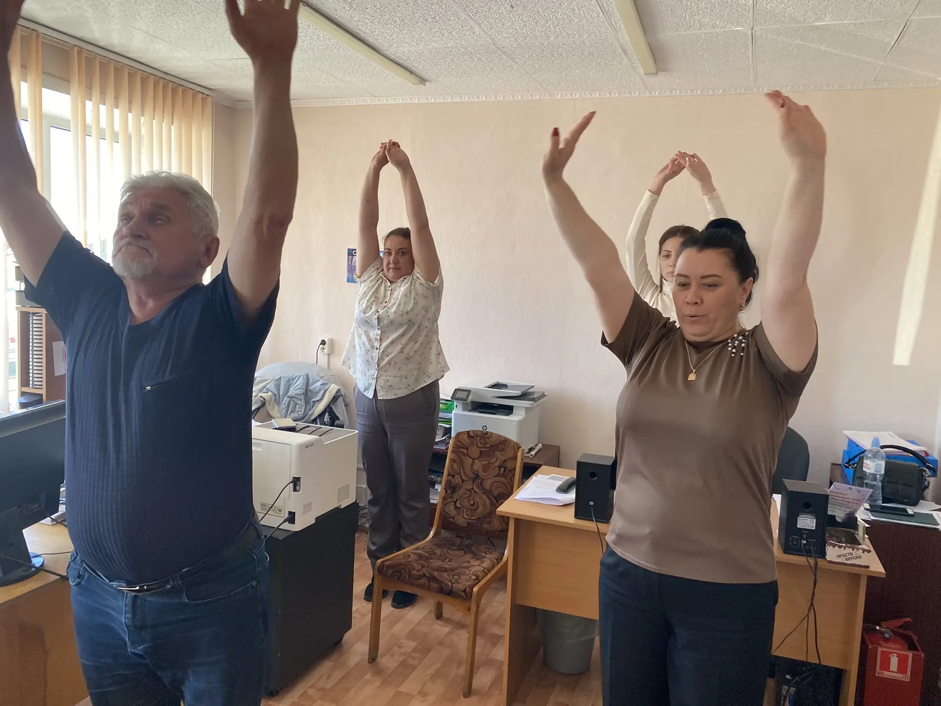 Главная » 2026 Апрель 7 » День здоровья: делаем зарядку на рабочем месте День здоровья: делаем зарядку на рабочем месте 7 апреля во всем мире отмечается День Здоровья. В этот день в нашем округе сотрудники социальной сферы проводят разнообразные акции. Они напоминают нам, что о себе нужно заботиться и оставаться активными и энергичными всегда и везде.Сегодня работники учреждений культуры и образования приняли участие в еженедельной производственной гимнастике на рабочем месте, который стал частью масштабной инициативы по увеличению доли граждан, занимающихся физической культурой и спортом, согласно Указу Президента Российской Федерации В.В. Путина. Все участники в очередной раз продемонстрировали настрой на активный и здоровый образ жизни! Зарядку провел Новиков Константин Александрович, инструктор по спорту МБУ «Клубы по месту жительства». В рамках своей разработанной программы «Производственная гимнастика» он подобрал комплекс упражнений с учетом разной физической подготовки присутствующих. Занятие оказалось не только полезным, но и занимательным: размялись, пошутили, подняли себе настроение. Спорт объединяет всех! #Деньздоровья