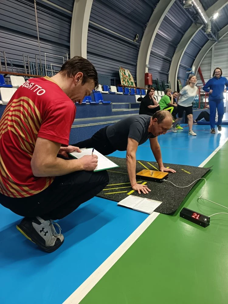 Главная » 2026 Март 2 » «Готов к труду и обороне» «Готов к труду и обороне» В преддверии Международного женского дня 8 Марта и 95 годовщины создания Всероссийского физкультурно-спортивного комплекса «Готов к труду и обороне» (ГТО) сотрудники администрации Тяжинского муниципального округа приступили к выполнению нормативов комплекса. Более 30 человек прибыло в спортивный комплекс «Юность» на это мероприятие. После проведенной разминки и инструктажа сотрудниками центра тестирования ВФСК «ГТО» Тяжинского муниципального округа участники мероприятия приступили к выполнению тестов. Выполняли тесты на гибкость, силу, выносливость и скорость. Не сказать, что выполнение нормативов далось всем легко, но сотрудники учреждения подошли к делу со всей ответственностью и в целом показали очень неплохие результаты. Поздравляем с достойным выполнением нормативов!