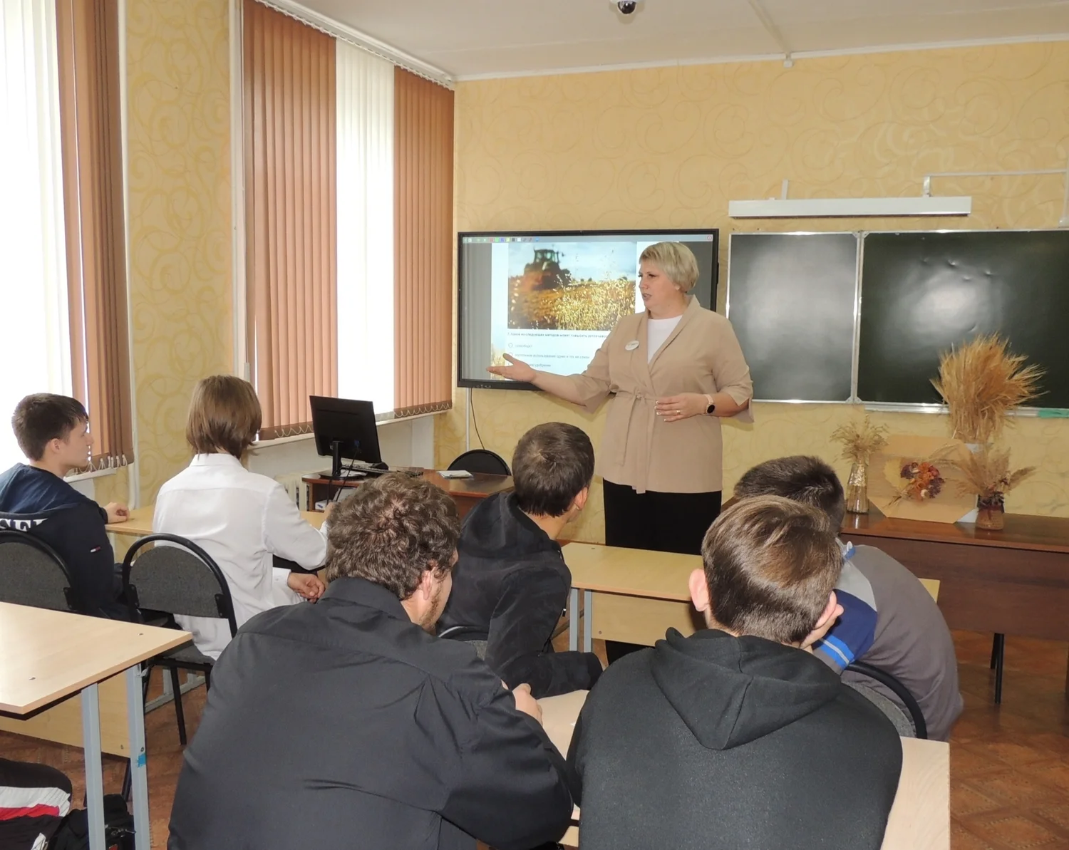 Главная » 2025 Октябрь 9 » Интеллектуальная викторина "Знатоки сельского хозяйства" Интеллектуальная викторина "Знатоки сельского хозяйства" 9 октября 2025 года в Тяжинском агропромышленном техникуме в преддверии Дня работника сельского хозяйства и перерабатывающей промышленности советник директора по воспитанию Коростелева Людмила Олеговна провела увлекательную викторину "Знатоки сельского хозяйства".Студенты второго курса разделились на три команды и с большим азартом отвечали на вопросы викторины, записывая свои ответы в бланки. По итогам викторины , ребята показали отличные результаты. Во время викторины участники узнали о различных сельскохозяйственных культурах, которые выращиваются в нашем округе и регионе. Это помогло им лучше понять мир сельского хозяйства. В конце мероприятия прошла дополнительная игра, где лучшим знатоком стал Васин Дмитрий. Также студенты смогли увидеть и потрогать колосья разных сельскохозяйственных культур, что вызвало у них большой интерес и желание узнать больше. Спасибо всем за активное участие и создание замечательной атмосферы! #ТАПТ #Викторина #ЗнатокиСельскогоХозяйства #оРаботникахСХНД #НавигаторыСПО #НавигаторыСПО42 #Росдецентр