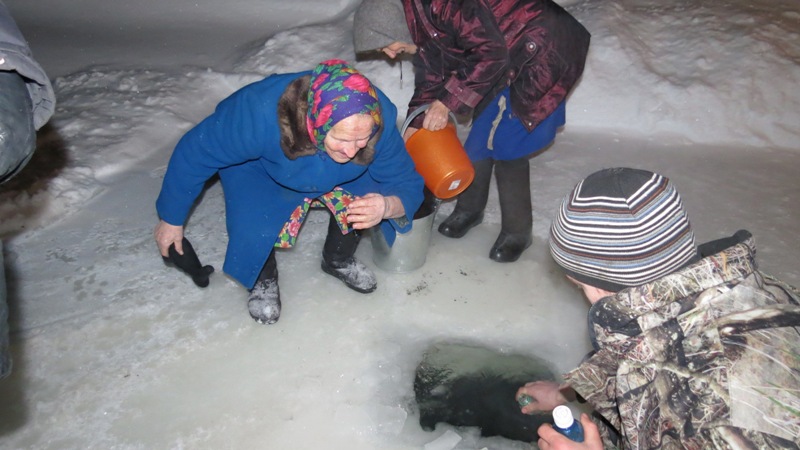 Главная » 2014 Январь 20 » Крещенское купание Крещенское купание В православный праздник Крещения Господня в селе Старый Тяжин традиционно было организовано место купания. Прорубь на реке Тяжин оборудовали не только деревянными сходнями и поручнями, но также и настилом ограничивающим глубину погружения. На берегу была очищена от снега вместительная стоянка для автомобилей. Здесь дежурили спасатели, медики и полицейские. Для обогрева купающихся был разожжён большой костёр. После купания можно было согреться горячим чаем. В Крещенских купаниях приняли участие более 500 человек. В прорубь на реке Тяжин также окунулся глава Нововосточного сельского поселения Юрий Алексеевич Акимов.