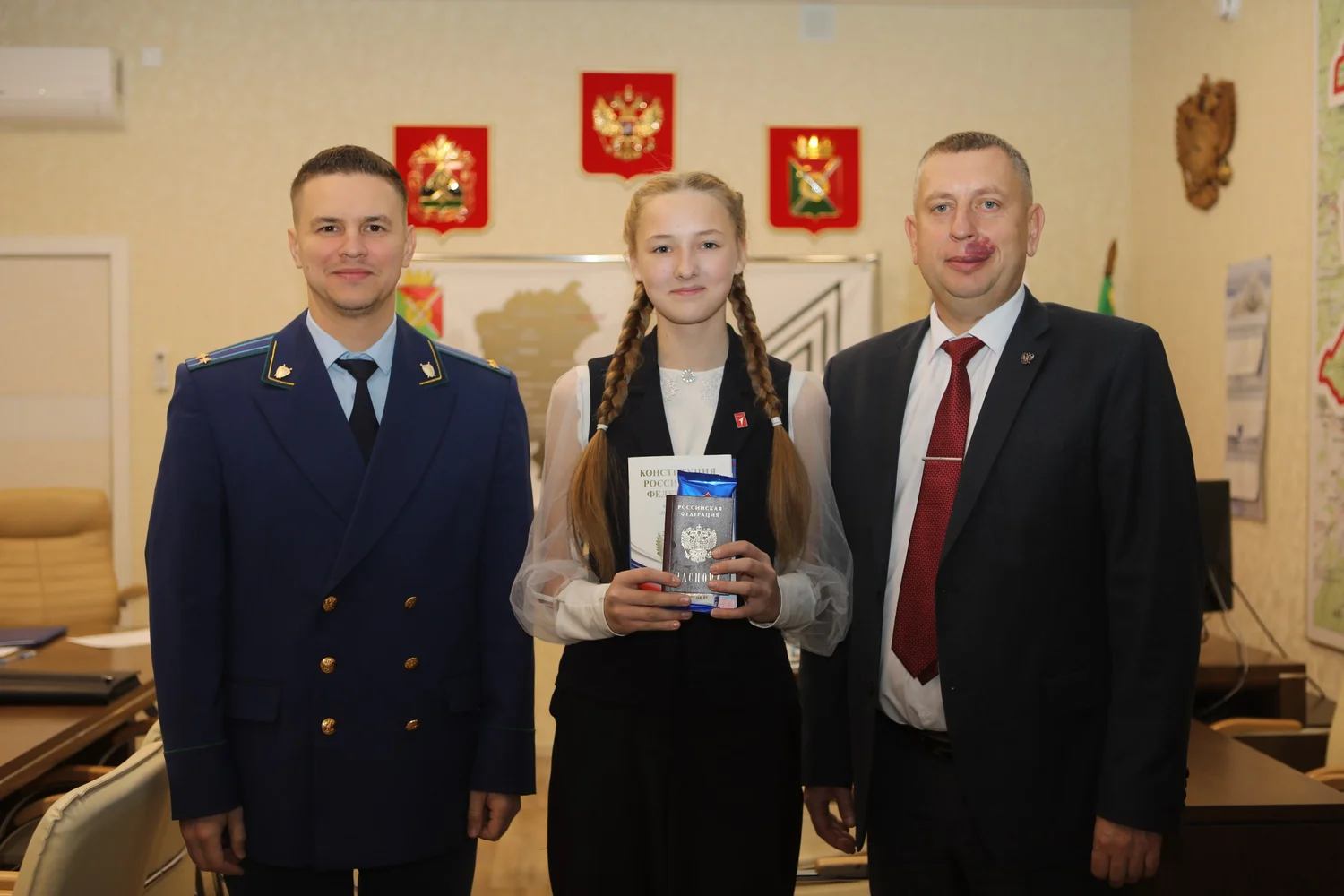 Главная » 2025 Октябрь 29 » Мы - граждане России! Мы - граждане России! Сегодня вместе с прокурором Тяжинского района Константином Олеговичем Матвеевым в торжественной обстановке 4 юным жителям округа, достигшим 14-летнего возраста, вручили первые паспорта.Вместе с документом, удостоверяющим личность, ребята получили собственный экземпляр Конституции Российской Федерации. От всей души поздравляю наших юных земляков с таким важным событием! Желаем вам быть достойными гражданами нашей страны и вносить свой вклад в её развитие и процветание!