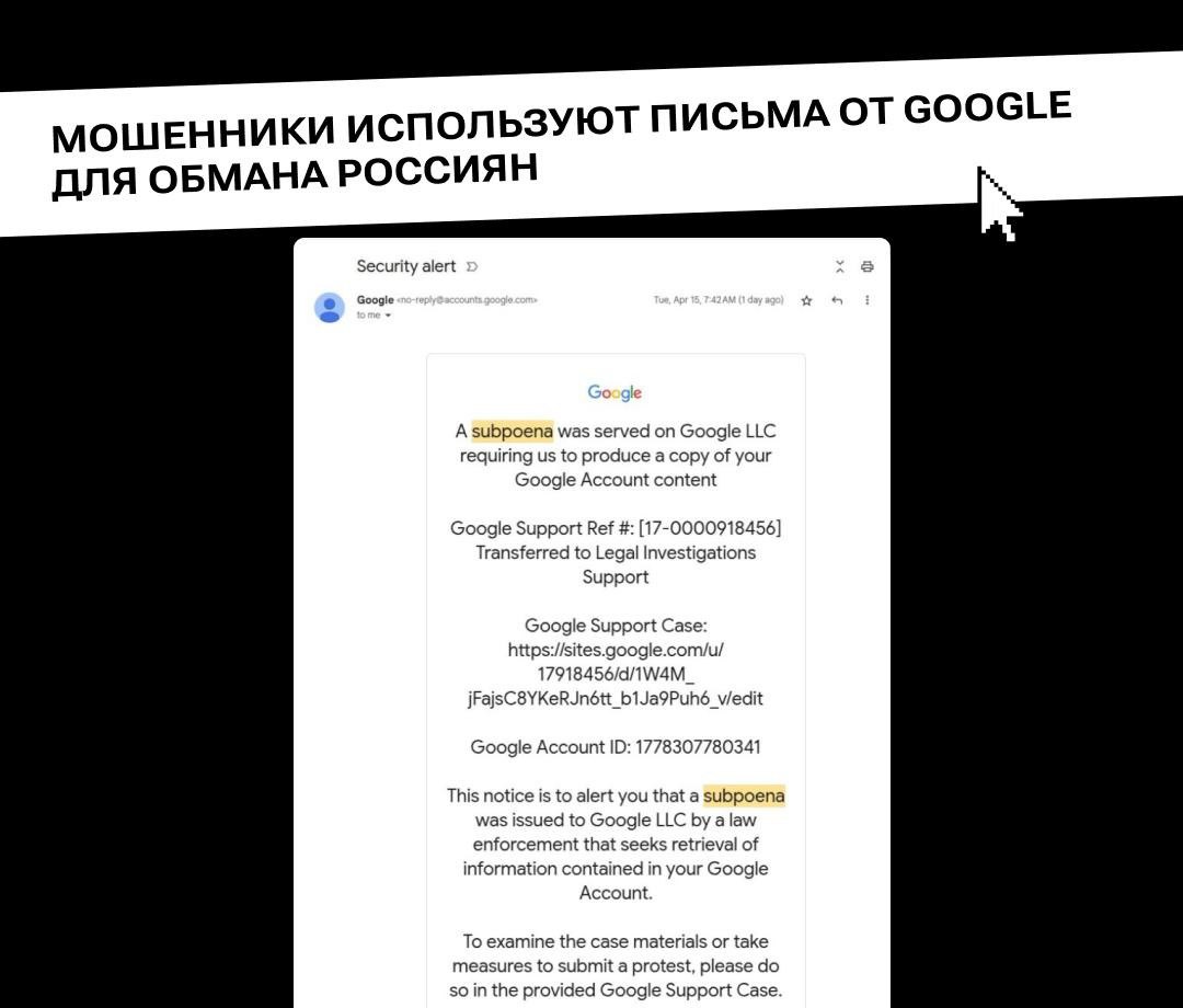 Главная » 2025 Май 20 » Новая схема сетевого мошенничества реализуется через рассылку писем от сервиса Google Новая схема сетевого мошенничества реализуется через рассылку писем от сервиса Google Суть схемы: уязвимость сервиса Google позволяет злоумышленникам повторно отправлять официальные письма от компании, но с измененным текстом. Письма при этом приходят с уведомлением о судебной повестке, чтобы напугать пользователя и побудить его перейти на ложную страницу поддержки Google для подробностей.То есть пользователь видит письмо с подлинного аккаунта no-reply@google. com, но в сообщение вшиты ссылки, ведущие на фишинговые сайты, замаскированные под Google. И если перейти по ссылке, то данные, оставленные на этом ресурсе, могут быть украдены злоумышленниками и использоваться в их целях. Будьте бдительны и предупредите близких! Если вы используете почту Gmail, игнорируйте подобные послания и не переходите по ссылкам из электронных писем до устранения уязвимости.