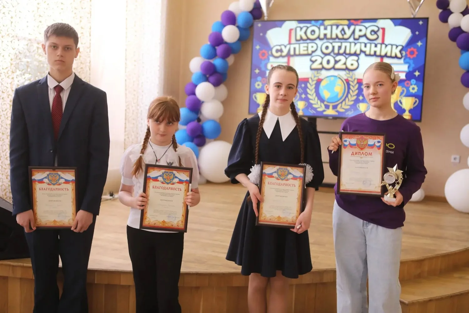 Главная » 2026 Апрель 20 » Окружной конкурс «СУПЕР ОТЛИЧНИК 2026» Окружной конкурс «СУПЕР ОТЛИЧНИК 2026» 17 апреля в зале Доме культуры «Юбилейный» собрались ученики, учителя, родители и гости, чтобы поддержать участников окружного конкурса «СУПЕР ОТЛИЧНИК 2026», в рамках региональной межведомственной программы «Лига отличников Кузбасса».В конкурсе приняли участие те, кто не просто учится на «отлично», но и своим примером вдохновляет других, кто стремится к знаниям, открытиям и новым вершинам. Тяжинскую среднюю школу № 1 имени Героя Кузбасса Н. И. Масалова представили Сергей Немчинов 8 «В» класс и Мария Романюк 8 «А» класс, Тяжинскую среднюю школу № 3 представила Ия Кузнецова 6 «А» класс и Итатскую среднюю школу имени Т. Ф. Данкевич представляла Карина Авраменко 6 «Б» класс. Этот конкурс стал для участников не только испытанием, но и настоящим праздником знаний, дружбы и творчества. Все конкурсанты представили себя в следующих испытаниях: визитная карточка «Звезда знаний», творческое задание «Золотой талант» и, конечно, проверка на смекалку и эрудицию в интеллектуальном конкурсе «Отличник на все 100». Знания — это сила, а оценка знаний — это искусство. Для оценки наших супер отличников были приглашены, те кто определял судьбу победителя: А.А. Меновщикова- председатель местного отделения «Движение первых» в Тяжинском муниципальном округе, Т.С. Тимофеева- художественный руководитель Дома культуры «Юбилейный», режиссер массовых представлений, А.А. Артемьева - начальник отдела молодежной политики, спорта и туризма администрации Тяжинского муниципального округа. В результате зрелищного конкурса места распределились так: победитель конкурса «СУПЕР ОТЛИЧНИК- 2026» - Мария Романюк; 1 место- Ия Кузнецова; 2 место- Карина Авраменко; 3 место- Сергей Немчинов. По мнению болельщиков приз зрительских симпатий получила Ия Кузнецова. Для всех присутствующих в зале прозвучали музыкальные номера в исполнении творческого объединения «Город детства» Тяжинского центра дополнительного образования (руководитель И.Номаль). Мы благодарим всех, кто принимал участие в подготовке конкурса «СУПЕР ОТЛИЧНИК– 2026» и поздравляем самых смелых и креативных отличников Тяжинского округа.