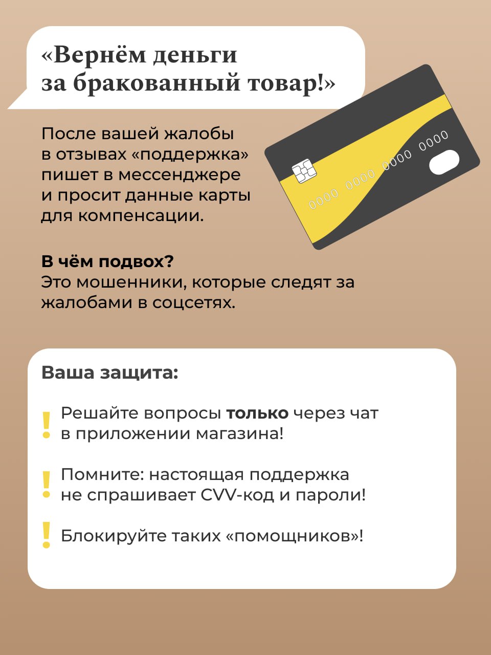 Главная » 2025 Ноябрь 10 » Осторожно, распродажа! Популярные схемы онлайн-мошенников! Осторожно, распродажа! Популярные схемы онлайн-мошенников! Мошенники уже на старте!Ловят каждого, кто теряет бдительность. Они действуют быстро и изощренно, маскируясь под тех, кому мы доверяем. Во время распродаж можно купить нужные вещи по выгодной цене, но есть риск столкнуться с мошенниками. Вместе с проектом «Мои финансы» рассказываем о популярных схемах обмана. ![]() ![]() ![]() ![]() ![]() ![]()