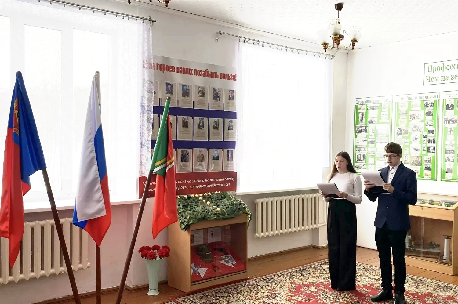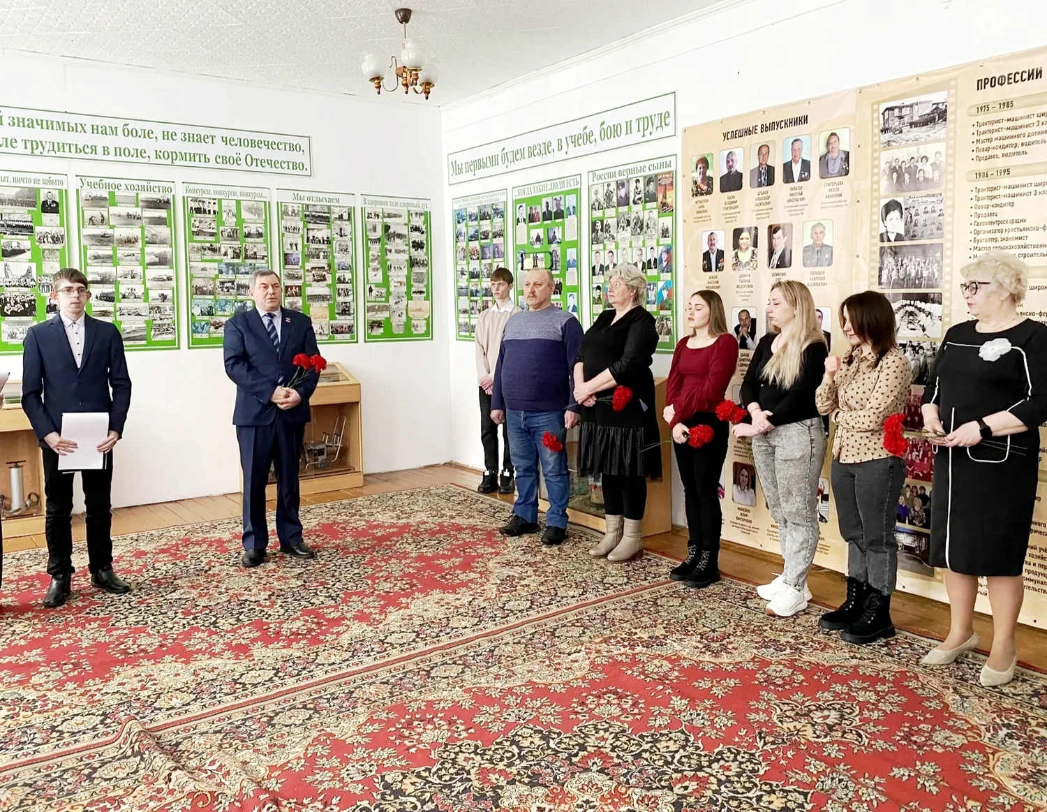 Главная » 2026 Февраль 20 » Открытие памятной доски "Нам героев наших позабыть нельзя!" Открытие памятной доски "Нам героев наших позабыть нельзя!" Помним, гордимся!Сегодня, в преддверии Дня Защитника Отечества, в Тяжинском агропромышленном техникуме состоялось трогательное открытие памятной доски "Нам героев наших позабыть нельзя!", посвященной выпускникам, погибшим в ходе специальной военной операции на Украине. На церемонии собрались родители и близкие героев, администрация, сотрудники техникума и студенты. Все пришли почтить память погибших, которые отдали свои жизни за наше мирное небо. Право открыть памятную доску было предоставлено родителям погибшего бойца А. Землякова. Герои живы, пока мы помним о них! Мы почтили память ребят и всех тех, кто не вернулся с полей сражений, минутой молчания и возложили цветы. Завершилось мероприятие выступлением участника вокальной студии "Акцент" Николая Денеко, который исполнил трогательную песню "Журавли" в память о наших героях. #ПомнимГордимся #ГероиНашегоВремени #ТяжинскийТехникум #ДеньЗащитникаОтечества #ГероиСВО #памятнаядоска