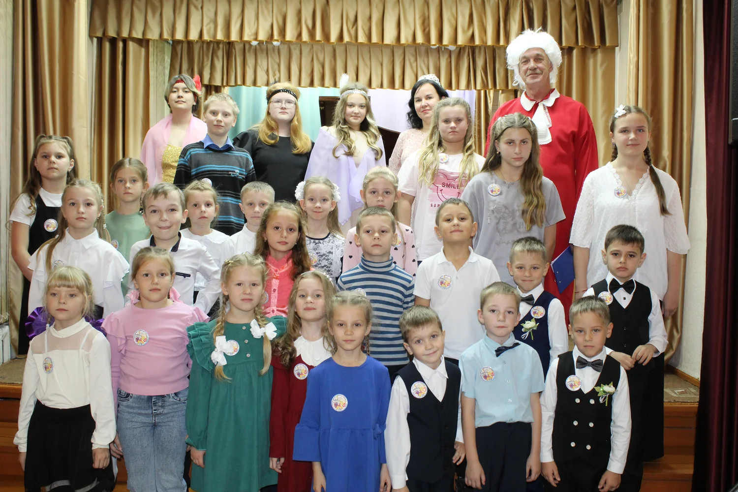 Главная » 2025 Октябрь 23 » Посвящение в первоклассники Посвящение в первоклассники 22 октября в зале Детской школы искусств № 31 прошел праздник «Посвящение в первоклассники».Учащихся 1 класса встретили творческие музы Эвтерпа – муза музыки, Мельпомена – муза театра и магистр творческих искусств, которые провели небольшое испытание для посвящаемых. Фальшивая нота появившаяся на сцене пыталась сбить ребят с правильных ответов, но первоклассники ответили правильно на все творческие загадки. В роли музы фальшивой ноты и магистра выступили учащиеся отделения театрального искусства со своим педагогом. Участникам торжества был дан небольшой праздничный концерт, в котором выступили ученики отделений Детской школы искусств № 31. В финале мероприятия, после принятия клятвы заведующая учебной частью школы Н.А. Чухрова вручила первоклассникам памятные значки.
