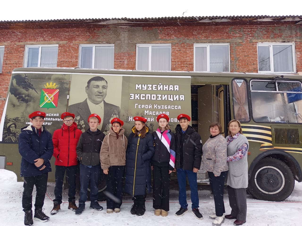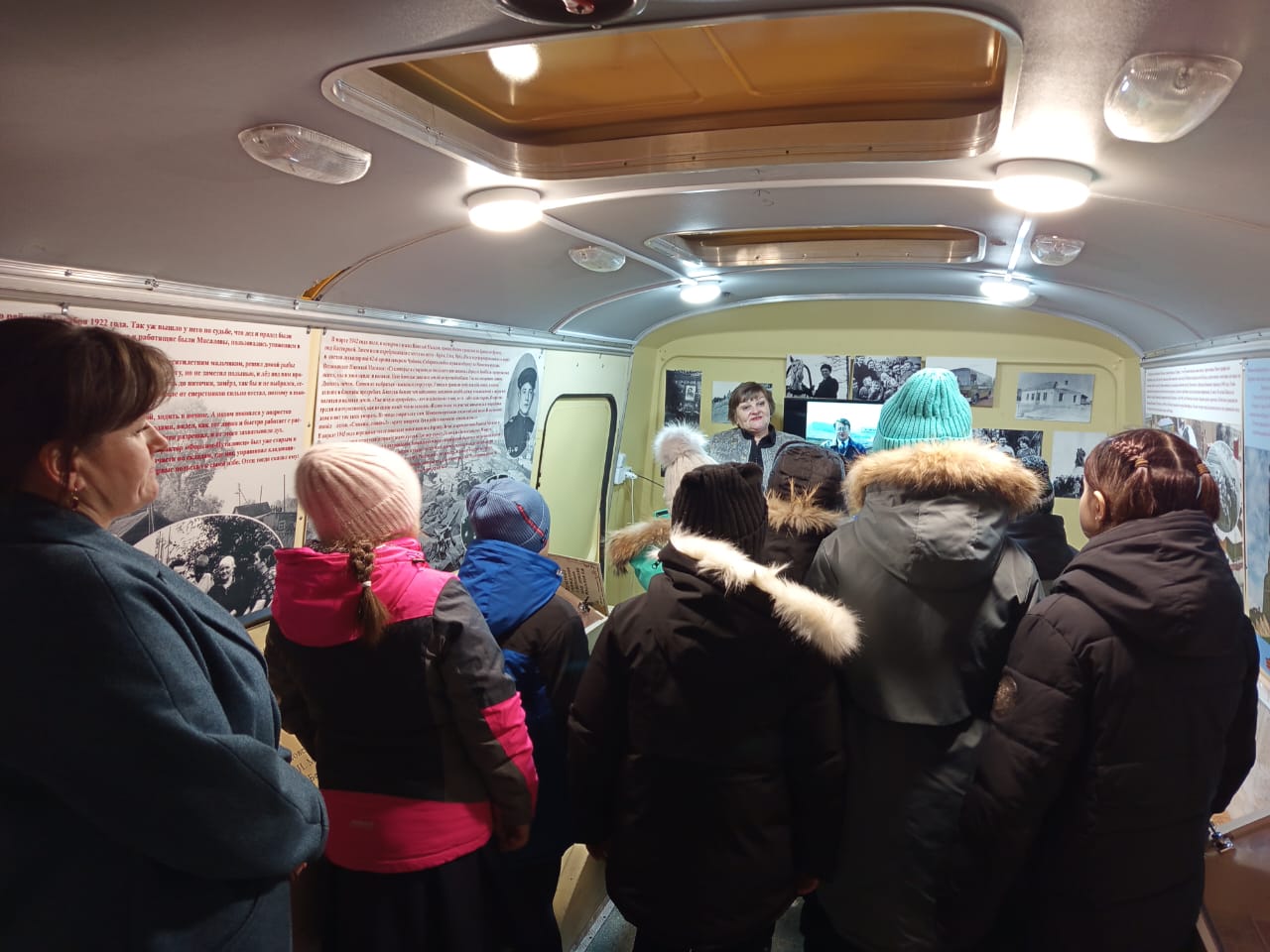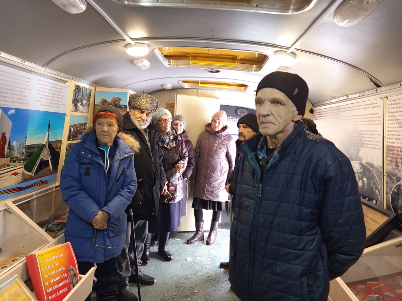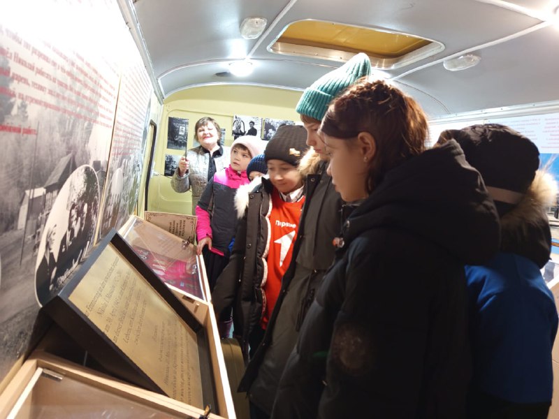 Главная » 2025 Ноябрь 11 » «Прикосновение к Подвигу» «Прикосновение к Подвигу» В год 80-летия Великой Победы «Прикосновение к Подвигу» Седьмого ноября сотрудники историко-краеведческого музея побывали в селах Кубитет и Новоподзорново Тяжинского муниципального округа и провели экскурсии по передвижной музейной экспозиции на колесах «Прикосновение к Подвигу» для разновозрастных жителей. С особым вниманием и интересом юные экскурсанты слушали рассказ о жизни и подвиге нашего прославленного земляка Николая Ивановича Масалова – участника Великой Отечественной войны, Героя Кузбасса.