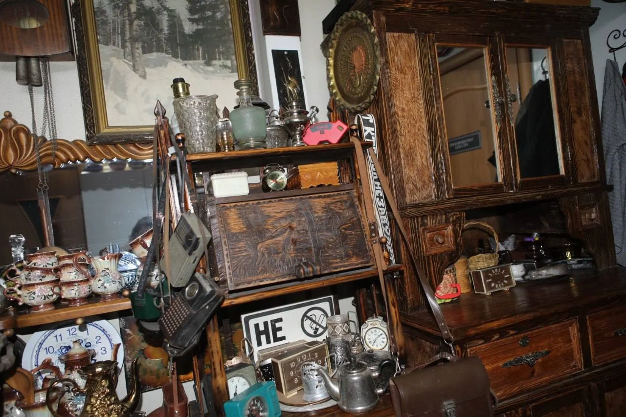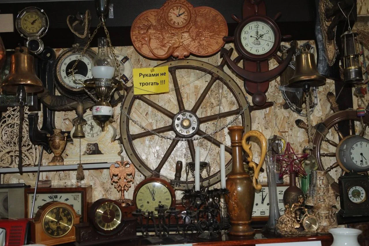 Посещая его магазин «Гелиос», оказываешься словно в музее разного времени. Кроме образцов материалов, из которых изготавливается и реставрируется мебель, большую часть занимает обширная коллекция предметов старины, жемчужиной которой является собрание более чем 2000 различных старинных хронометров: с боем, перезвоном, будильники, с кукушкой, с маятником, лошадьми, змеями и дятлами... Целое царство времени, к которому сам Валерий относится, как и любой коллекционер, затаив дыхание, - с почтением, как к живому существу.