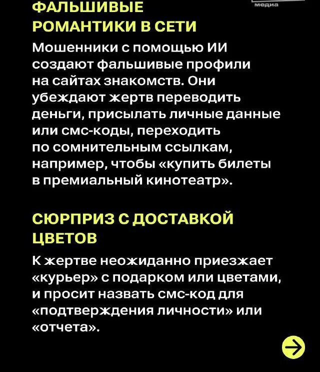Главная » 2026 Февраль 11 » Схемы обмана мошенников в преддверии Дня влюбленных Схемы обмана мошенников в преддверии Дня влюбленных Мошенники в преддверии Дня влюбленных регистрируются на сайтах знакомств и выманивают у пользователей деньги и данные.Какие сценарии используют злоумышленники, подробности в карточках! ![]() ![]() ![]()