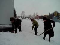 Главная » 2014 Январь 17 » Субботник Субботник По инициативе губернатора Амана Гумировича Тулеева с 17 января в Кузбассе будут проводиться еженедельные субботники по уборке снега. Сегодня в Тяжинском районе на уборку снега вышли 1100 человек – муниципальные служащие, работники учреждений социальной сферы, организаций и предприятий, школьники. Помимо этого было привлечено 18 единиц техники. По итогам субботника от сугробов освобождены 43 придомовых территории. От снега очищены кровли 35 многоквартирных и 210 частных домов. В рамках субботника в 50 учреждениях образования очищены от снега подходы к зданиям, проведена уборка снега и наледи с крыш. Пути следования детей посыпаны фрикционным материалом. В этот день за пределы населённых пунктов было вывезено 1800 кубометров снега. Очищены от снежных заносов 30 остановочных павильонов и 135 километров дорог. В местах работы звучала музыка, для участников субботника было организовано бесплатное чаепитие.