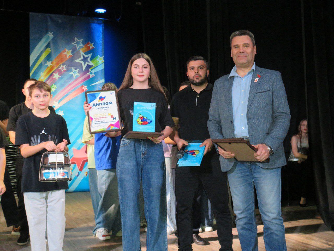 Главная » 2025 Ноябрь 24 » В Доме культуры «Юбилейный» состоялась долгожданная игра КВН-2025 «Поколение Альфа» В Доме культуры «Юбилейный» состоялась долгожданная игра КВН-2025 «Поколение Альфа» 21 ноября в Доме культуры «Юбилейный» состоялась долгожданная игра КВН-2025 «Поколение Альфа»В игре приняли участие: команда «Неделька» Тяжинской средней общеобразовательной школы № 1 имени Героя Кузбасса Николая Ивановича Масалова , команда «Свага» Тяжинской средней школы № 2, команда «На районе» Тяжинской средней общеобразовательной школы № 3, команда «Шанхай» Нововосточной средней школы. Команды соревновались в трех конкурсных заданиях: «Визитная карточка», «Вопрос-Ответ» , «Домашнее задание». По завершению игры места распределились следующим образом: Диплом I степени получила команда «На районе», Диплом II степени получила команда «Неделька», Диплом III степени получила команда «Шанхай», команда «Свага» получила диплом участника игры. Специальный Диплом «Лучшая актриса» вручили Виктории Радыгиной, Диплом «Лучший актер» завоевал Матвей Железовский. Диплом «Лучшая авторская шутка» достался команде «Неделька». Победителей игры КВН - 2025 определило компетентное жюри, в состав которого вошли участники игры КВН прошлых лет, представители культуры и молодежной политики. С музыкальными номерами выступили участники ансамбля танца «Созвездие», эстрадная группа «Мы» и солисты Дома культуры «Юбилейный».