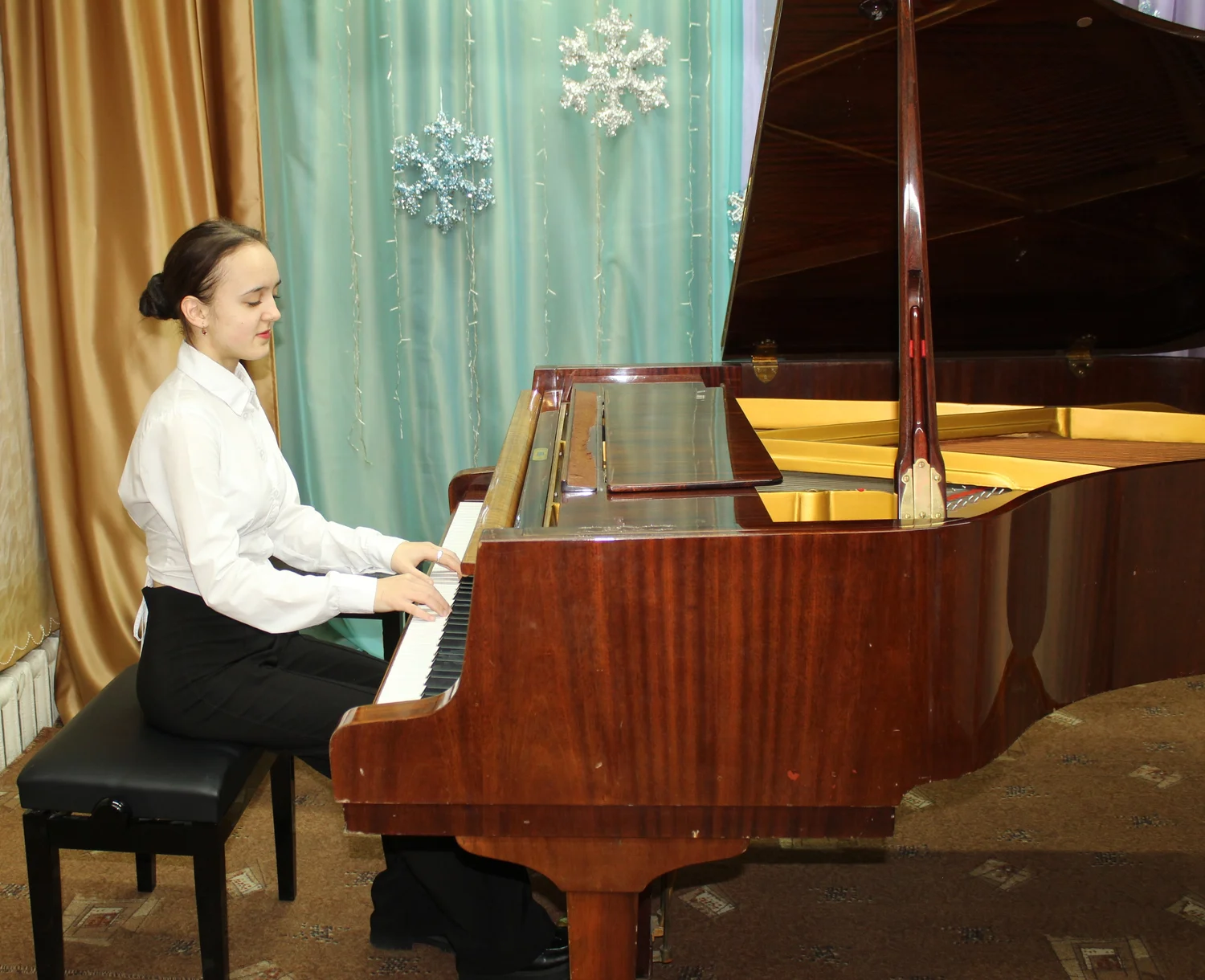 Главная » 2025 Декабрь 25 » В Тяжинской детской школе искусств № 31 состоялся концерт «Новогоднее настроение» В Тяжинской детской школе искусств № 31 состоялся концерт «Новогоднее настроение» Новогоднее настроение23 декабря 2025 года в Тяжинской детской школе искусств № 31 состоялся концерт «Новогоднее настроение». В концерте приняли участие учащиеся отделения фортепиано. Открыл и завершил концертную программу педагогический ансамбль песнями А.Лепина «Хорошее настроение» и А.Зубкова «Новогоднее настроение». Дед Мороз (Суханов А.В., преподаватель) и Снегурочка (Чухрова Н.А., заместитель директора по учебной работе) поздравили всех присутствующих с наступающим Новым годом, вручили отличникам школы Губернаторскую премию за отличную учёбу, благодарственные письма управления культуры администрации Тяжинского муниципального округа и новогодние подарки от главы округа Сереброва В.Е. Благодарим спонсора – Байрамову Оксану Викторовну за предоставленные новогодние подарки для всех участников концертной программы. Встреча с новогодними персонажами доставила радостные минуты не только детям, но и взрослым.