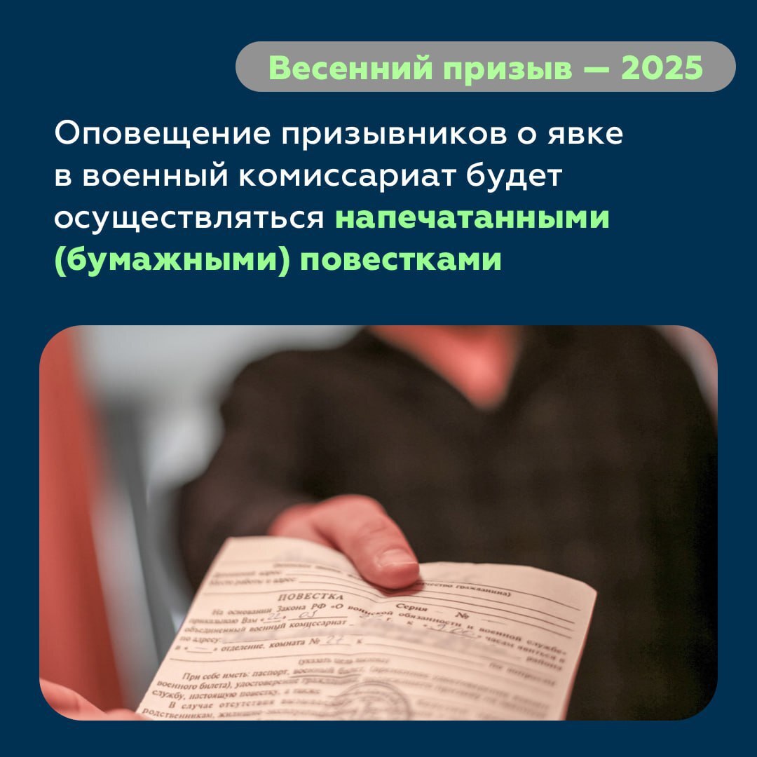 Главная » 2025 Апрель 3 » Весенний призыв-2025 стартовал Весенний призыв-2025 стартовал Весенний призыв-2025 стартовал.В строй встанут около 160 тысяч молодых людей по всей России! Об особенностях призыва этой весны, расскажем в карточках. ![]()