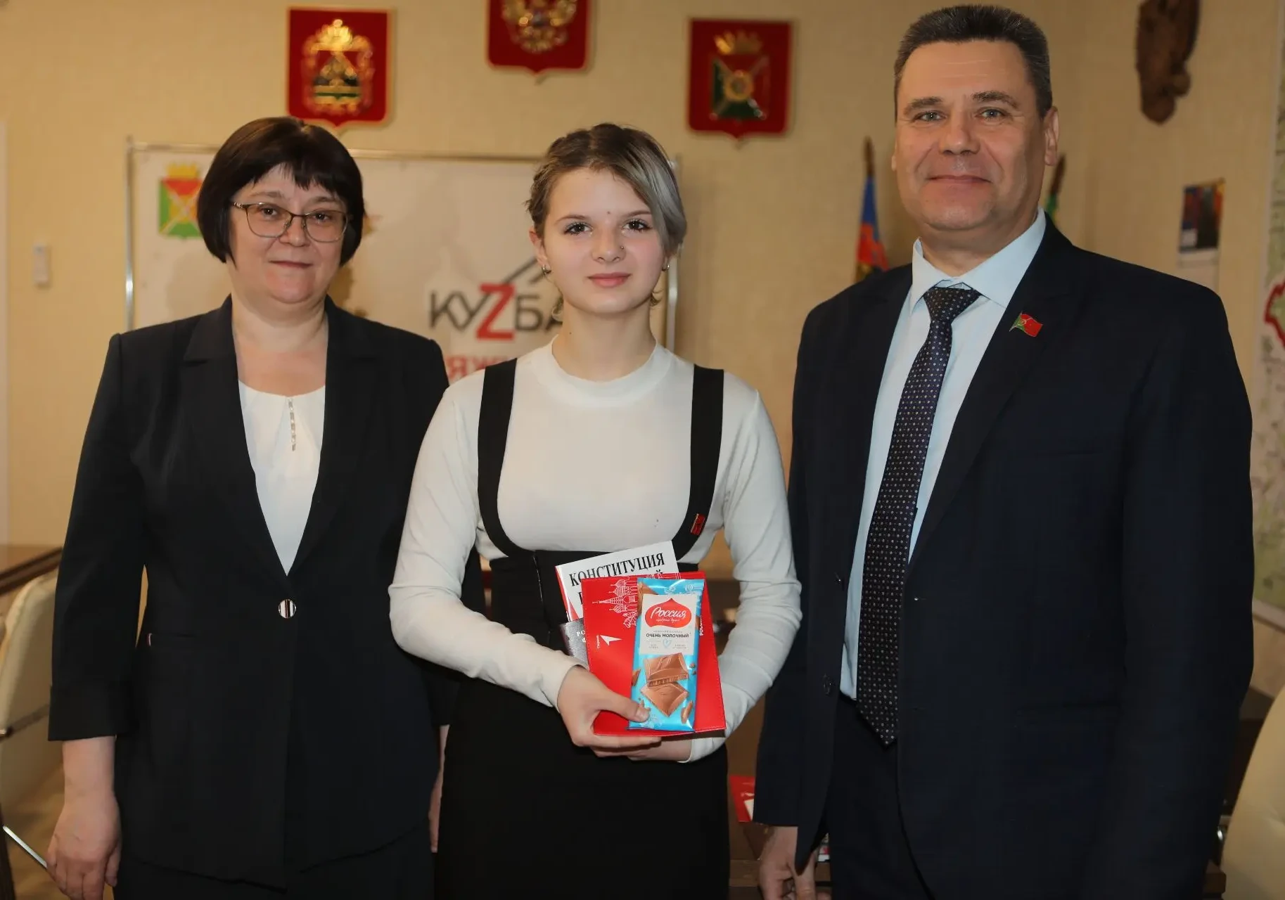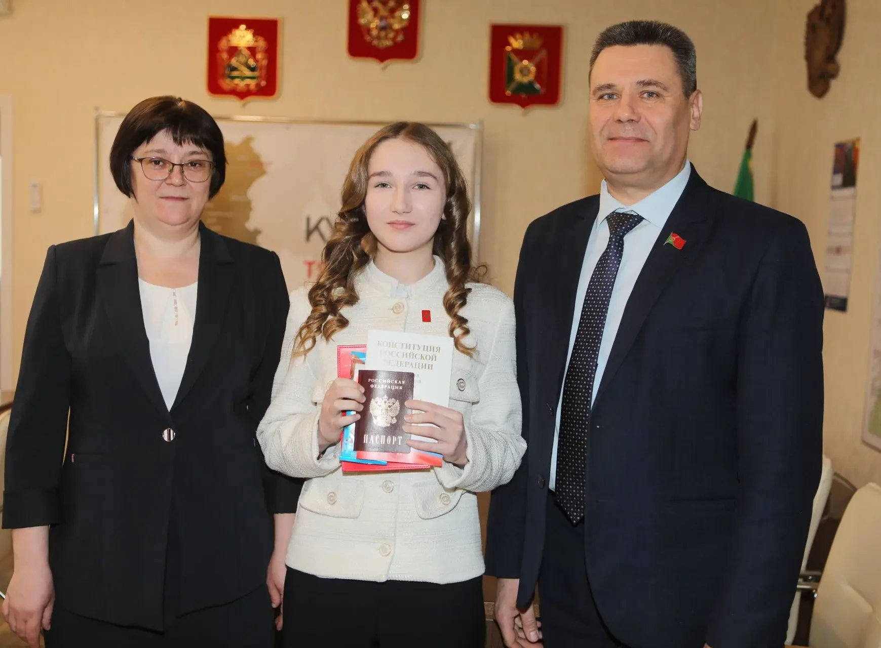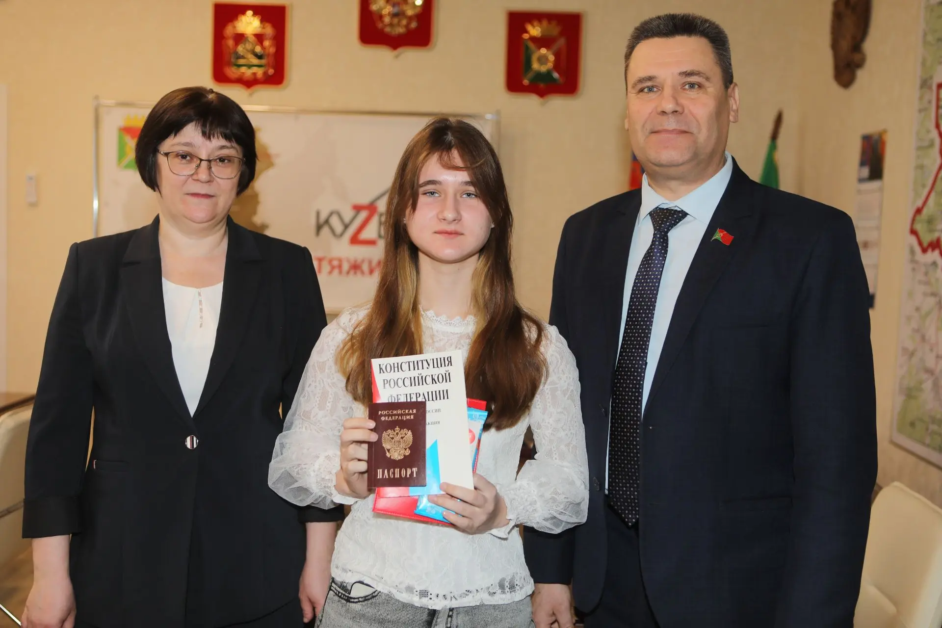 Главная » 2026 Февраль 19 » Вручение паспорта – шаг во взрослую жизнь Вручение паспорта – шаг во взрослую жизнь Вручение паспорта – шаг во взрослую жизньВ преддверии Дня защитника Отечества и.о. главы Тяжинского муниципального округа Ю.В. Ащук совместно с председателем совета народных депутатов А.И. Сорокиным и с начальником миграционного пункта отделения МВД России по Тяжинскому округу, майором полиции Н.А. Тимченко вручили ребятам самый первый главный документ. Паспорта получили шесть юных тяжинцев. Вместе с важным документом ребята получили Конституцию РФ и брендированные обложки на паспорта. Этот важный шаг ребята сделали в рамках Всероссийской программы "Мы - Граждане России!", которую реализует Общероссийское общественно-государственное движение детей и молодежи "Движение Первых". Поздравляем юных граждан России! Гордимся молодым поколением Тяжинского округа, они — наше будущее!